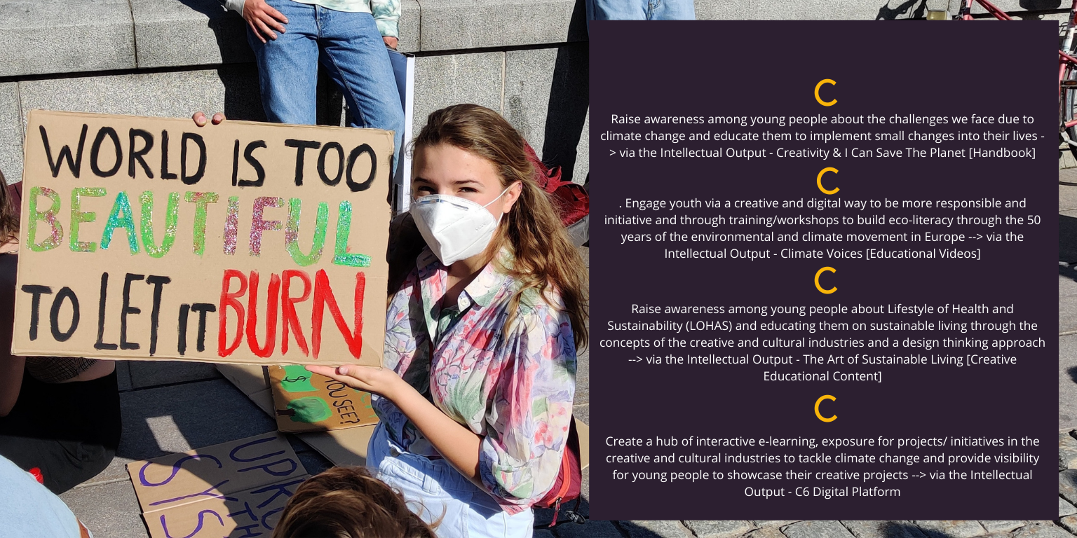 The vision of the “Creativity, Culture and Collaboration to Combat Climate Change” project is to support and prepare youth to become true factors of change by learning about sustainability and climate change, and how to mitigate their negative impact on the environment through various actions. Moreover, the results we are striving to achieve will not only help each partner in the project to introduce new practices within their activities to help the next generation of green enthusiasts and change-makers, but will also leave a long-lasting change in each participant of the project, and beyond.